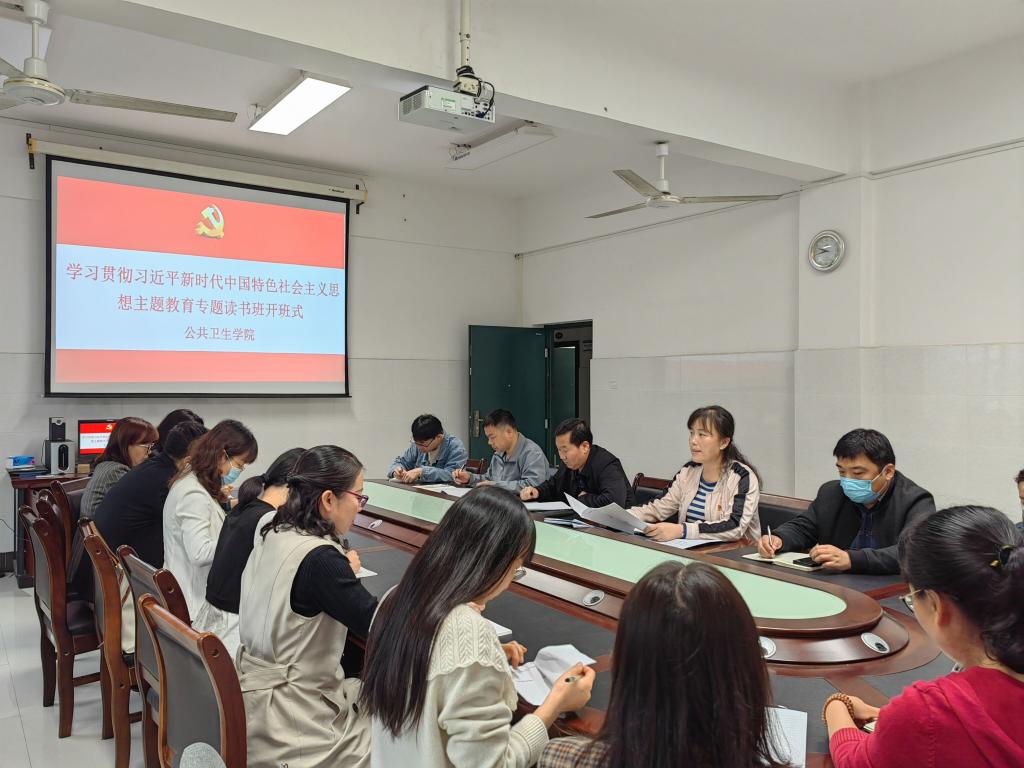 4月28日上午,公共卫生学院在学院行政楼212会议室举行学习贯彻习近平新时代中国特色社会主义思想主题教育读书班开班式。学院领导班子成员和全体师生党支部书记参加开班式。开班式由学院党委书记邓娜主持。