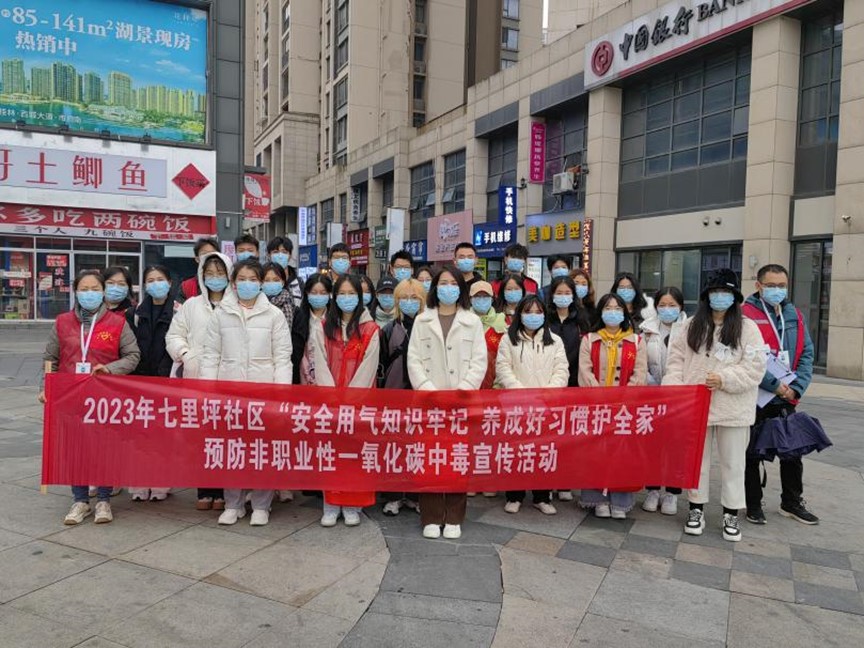 2023年11月15日下午,2023级预防医学本科班在七里坪社区开展了“安全用气知识牢记,养成好习惯护全家”预防非职业性一氧化碳中毒宣传活动。本次宣传活动旨在通过多种方式向市民普及相关知识,教育大众如何预防一氧化碳中毒,从而减少事故发生,保障居民的生命安全。