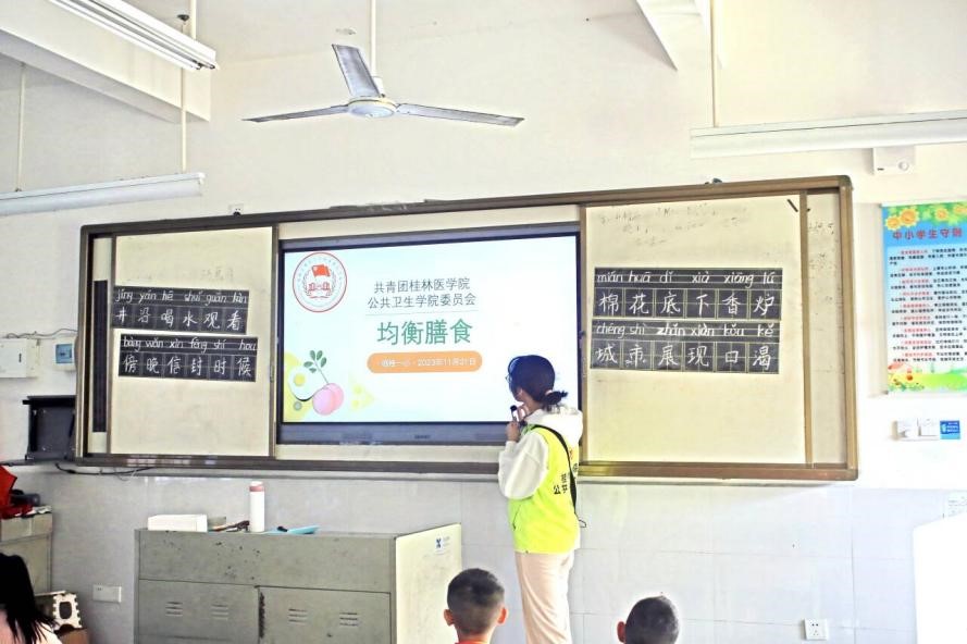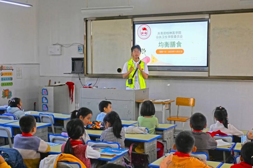 2023年11月25日,公共卫生学院在桂林市临桂区城区第一小学举办了主题为“均衡膳食,健康成长”的小学宣讲活动。