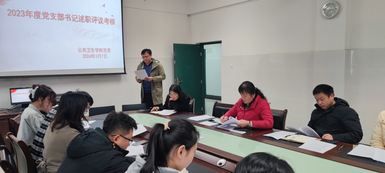 3月7日下午,公共卫生学院党委在212会议室举行2023年度党支部书记述职评议考核会议。学院全体党委委员、党支部书记、兼职组织员、党员代表、无党派人士及群众代表等参加会议。