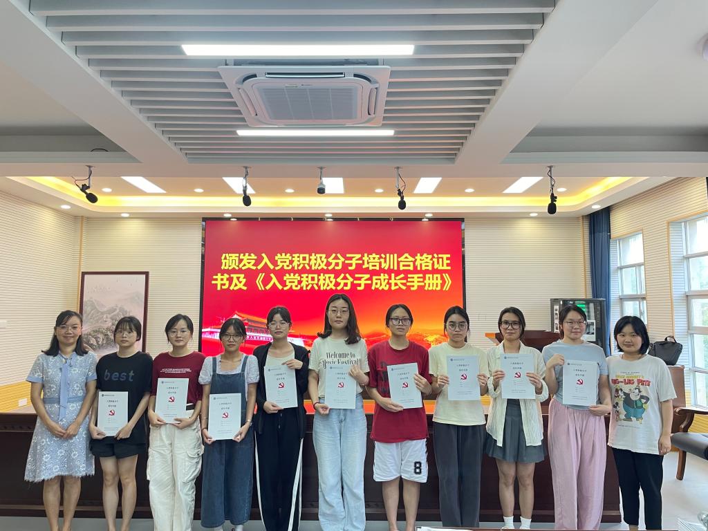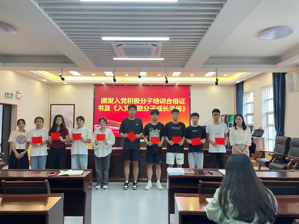 与会领导老师为同学颁发《入党积极分子培训合格证书》
