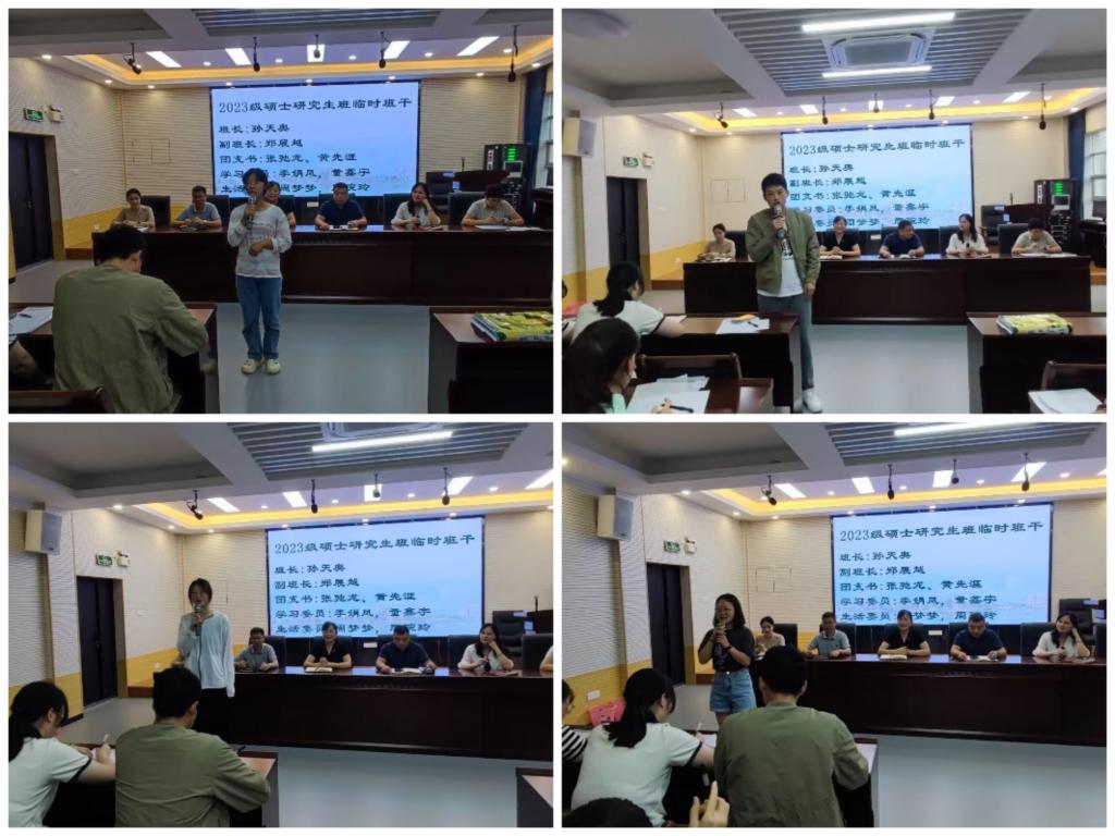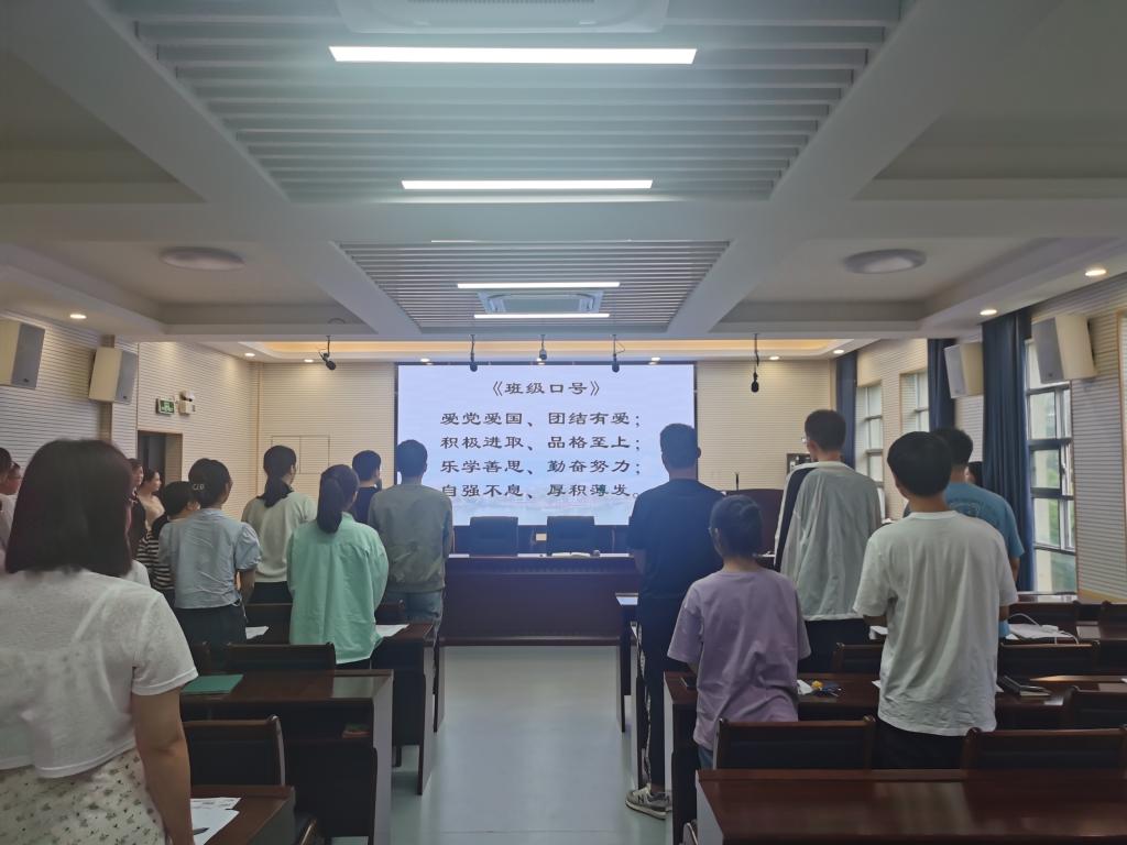最后,副书记张国栋宣读新生班级临时班委名单,同时班委依次上台向大家进行了自我介绍并围绕今后工作目标发言。结束后,全体新生起立,在班长的领读下共同宣读《班级口号》:爱党爱国、团结友爱;积极进取、品格至上;乐学善思、勤奋努力;自强不息、厚积薄发。至此,会议圆满结束。