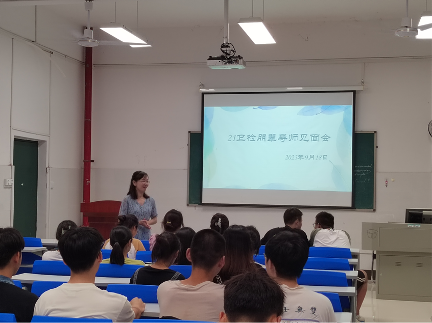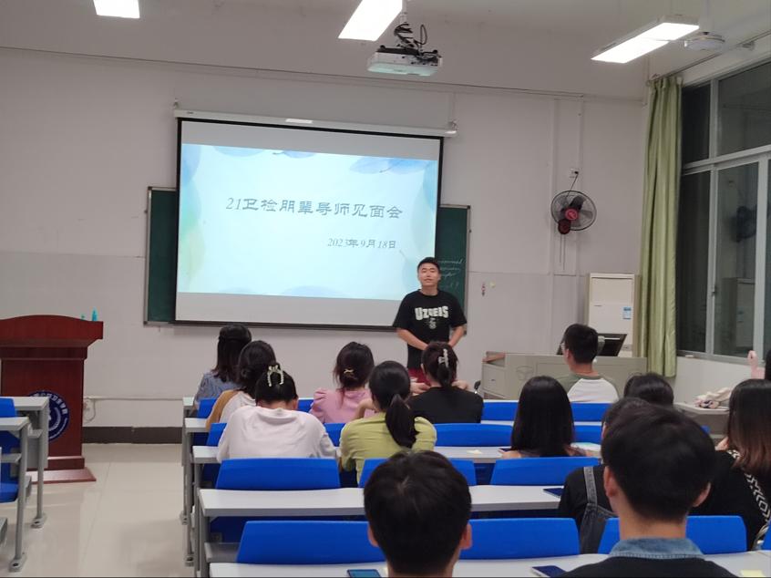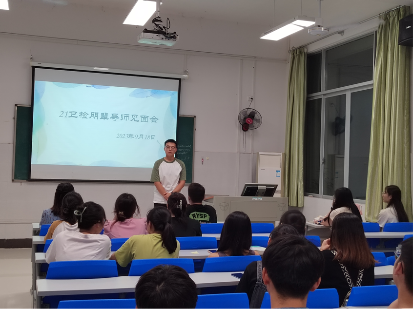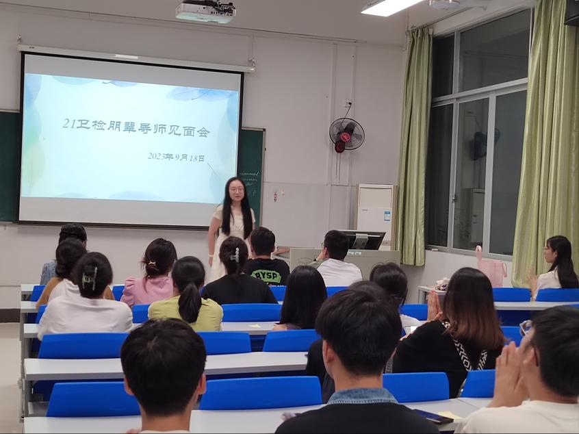 2023年9月18日下午,2021级卫生检验与检疫班邀请班级朋辈导师在桂林医学院临桂校区公共卫生学院C103教室举办了主题为“英语四六级备考指南,共享学术进步”的朋辈导师见面会。此次活动旨在为同学们提供备考四六级时的指导和经验分享,并共同分享学术进步的喜悦。辅导员葛静老师参与了本次班会。