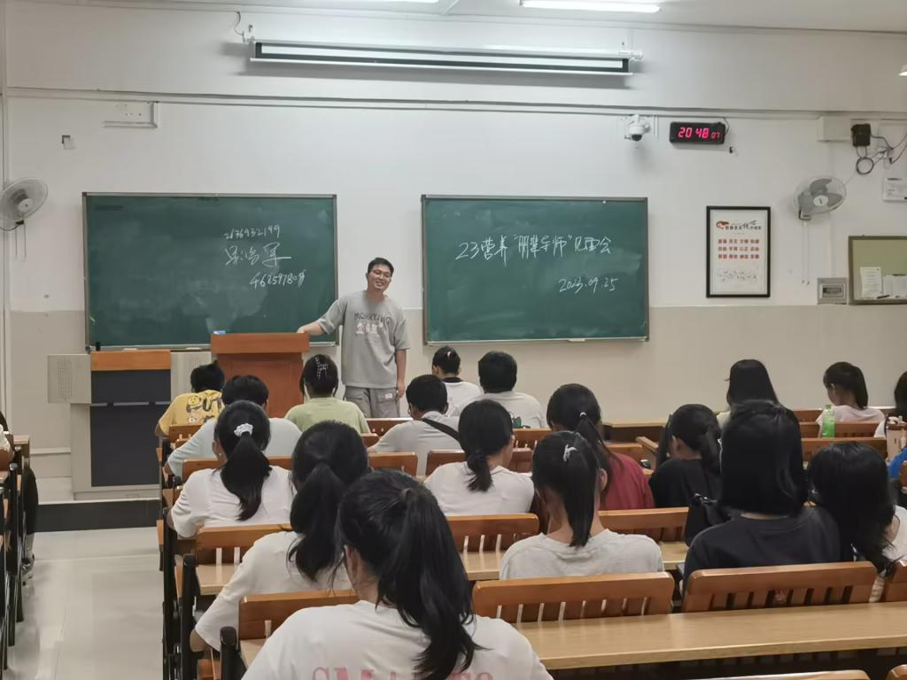 2023年9月25日晚,2023级食品卫生与营养学本科班在教学北楼208开展了朋辈导师见面会,五位朋辈导师受邀出席本次见面会。会议由辅导员徐益彩主持。