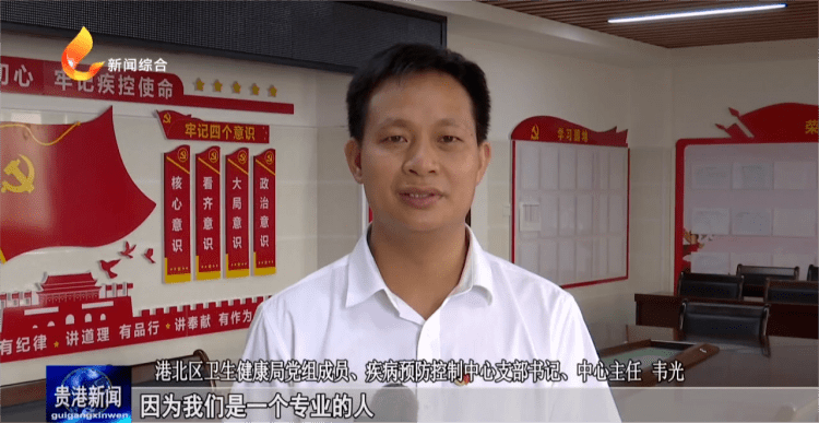 港北区卫生健康局党组成员、疾病预防控制中心支部书记、中心主任 韦光:因为我们是一个专业的人,特别是我们预防医学、公共卫生的专业人员,在我们看来能用我们的专业知识去服务我们的群众,为我们群众做一些力所能及的事情,为促进大家的健康,提供一些服务 ,是我们的职责所在,也是我们的价值所在。