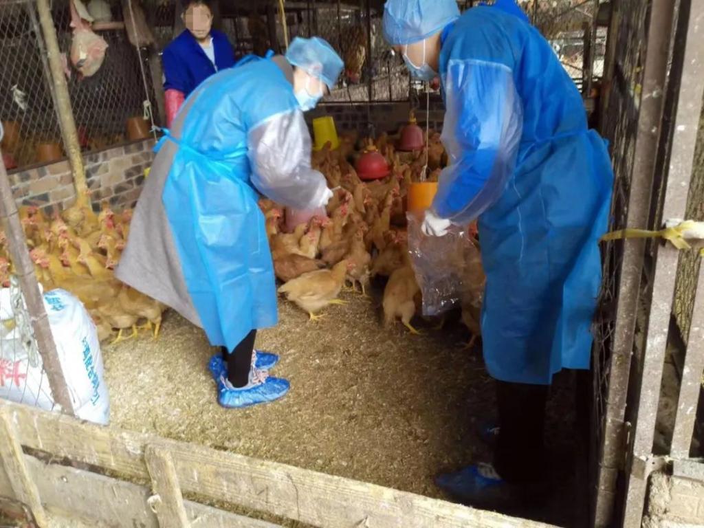 郭昕(右)在活禽市场做禽外环境监测采样