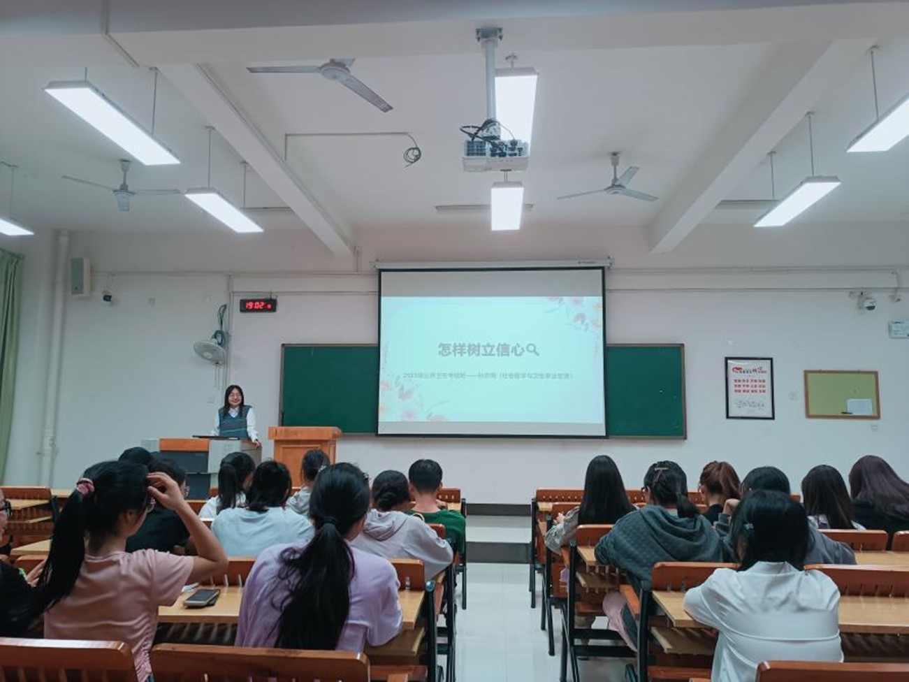 2023年11月4日,2022食品卫生与营养学本科班在教学楼北楼106室召开了以“树立自信,昂扬向前”为主题的朋辈导师主题班会。