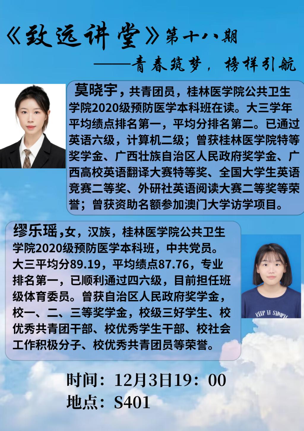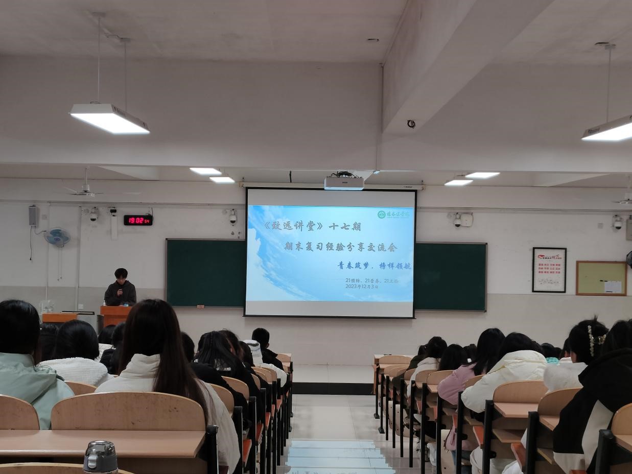 2023年12月3日19:00,《致远讲堂》第十八期期末复习经验分享交流会在桂林医学院南楼401教室成功举办。本次交流会旨在帮助同学们掌握有效的复习技巧,提高学习效率,为即将到来的期末考试做好充分准备。