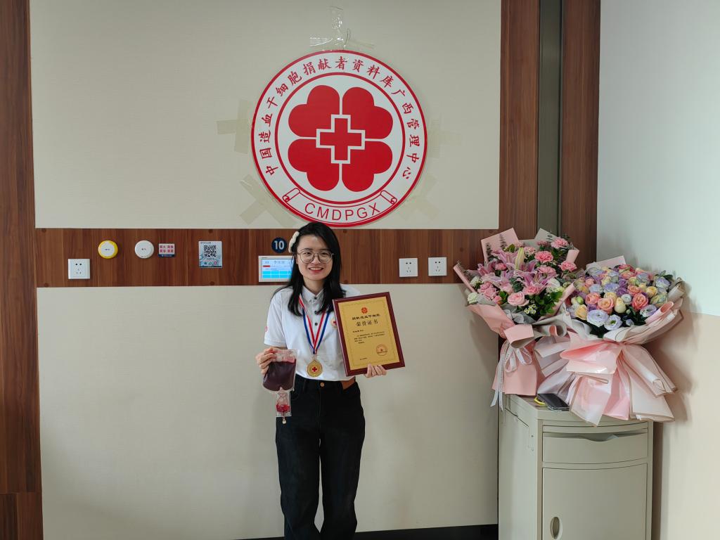 据了解,李佳璟在大学期间担任学校红十字会学生分会副会长,同时还是红十字会“微光成炬”生命教育宣讲团成员,长期积极组织并参与无偿献血与造血干细胞知识宣讲、应急救护及艾滋病健康教育宣讲等各种志愿服务公益活动。2022年5月,李佳璟在桂林医学院红十字文化传播基地开展的造血干细胞留样活动时,加入了中华骨髓库,成为一名志愿者。2023年10月,李佳璟接到红十字会工作人员电话,告知其与一名血液病患者初配型结果相合。她毫不犹豫同意捐献,之后积极配合高分辨检验和体检工作,最终进入捐献阶段。期间,她特别注意身体健康,准备随时以良好的身体状态捐献造血干细胞。