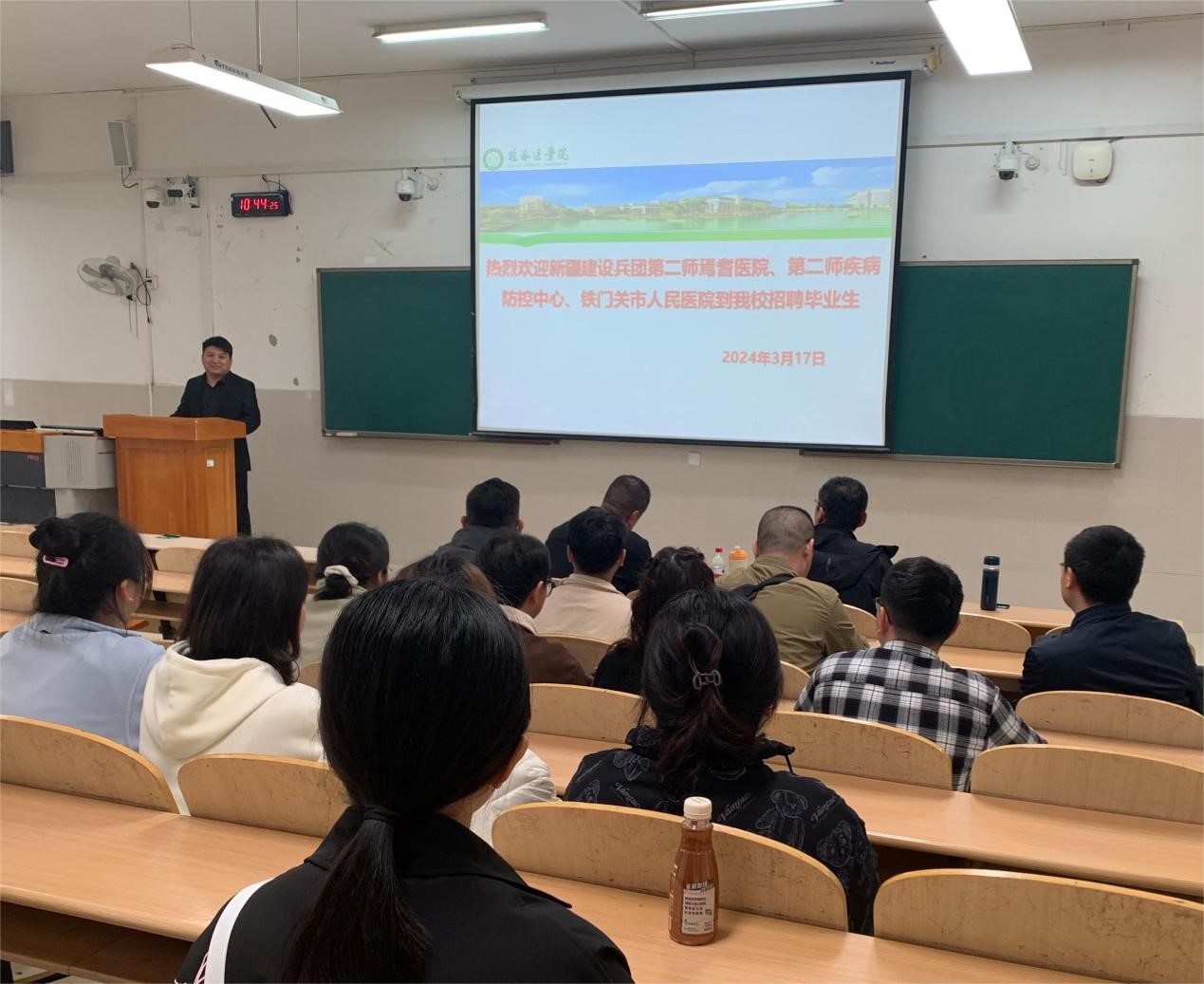 为做好2024届毕业生就业服务工作,3月17日上午,公共卫生学院组织召开了毕业生专场招聘会。新疆生产建设兵团第二师焉耆医院、第二师疾病预防控制中心、铁门关市人民医院受邀到我院招聘毕业生。公共卫生学院副院长曾怀才、党委副书记张国栋、学工办主任葛静、毕业班辅导员邹海凡以及30多名毕业班同学参加了招聘会。