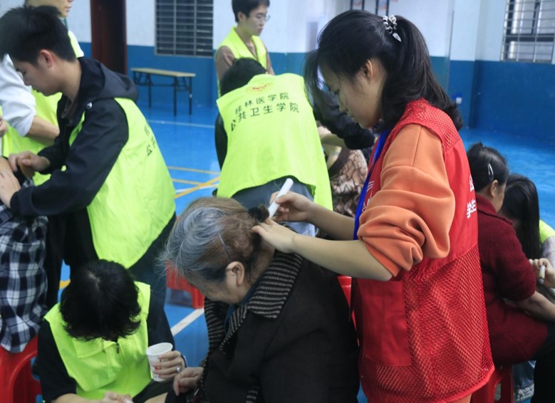 桂林医学院公共卫生学院红丝带志愿者服务队于2024年3月23日在崇文社区开展了本学期首场义诊活动,旨在推广健康服务至基层,同时提升公众对艾滋病相关知识的了解。