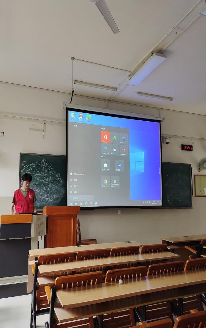 本次活动具体内容为每日中午和傍晚下课后至教学楼南、北楼检查各教室的电灯,电扇,投影的断电情况。如未及时断电,各活动成员及时关闭,检查完断电情况后,捡拾教学楼及其周围的垃圾。在活动中,我们深感本校部分同学节能意识淡薄,很多教室空无一人但风扇、灯都在运作,有的教室座位里有零零散散的垃圾,非常影响校园环境。