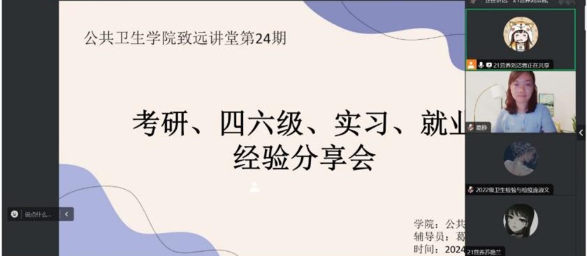 公共卫生学院第24期致远讲堂 ——21营养考研、四六级、实习、就业经验分享会成功举办