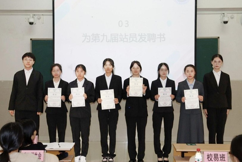 会上,第九届站长卢雅静对上一年度工作进行了总结,并分享了她在易班学生工作站的工作经历与感悟。她强调了团队合作的重要性,并感谢所有成员们的辛勤付出和不懈努力。同时,她也指出了工作站存在的不足之处,并呼吁新一届的易班学生工作站成员们能够继续发扬优良传统,为公共卫生学院的发展贡献自己的力量。随后,徐益彩为第九届站员颁发聘书,并对第九届易班学生工作站的工作给予了高度评价和认可,并表达了对新一届成员的期望。她希望新一届的易班学生工作站能够继承并发扬前任的优秀传统,不断创新,提高工作质量和效率,为公共卫生学院的建设和发展贡献更多的智慧和力量。接着,新一届的易班学生工作站站长进行了发言。他首先对徐益彩老师和前任站长卢雅静的信任表示感谢,并承诺将带领新一届成员们认真履行职责,努力推动易班学生工作站的工作不断向前发展。他强调了团队合作、创新进取的重要性,并表示将积极与兄弟学院易班站长交流合作,共同推动易班平台的建设和发展。