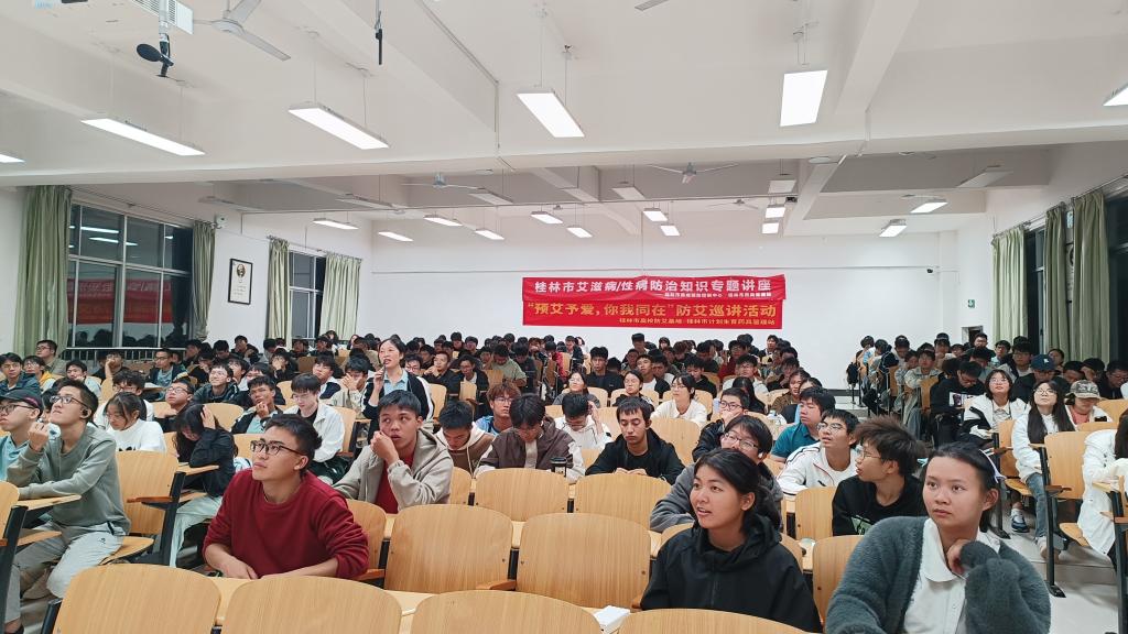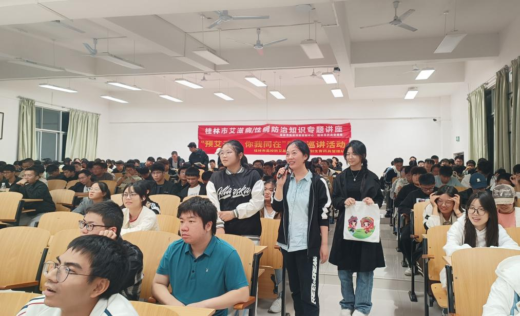 讲座中桂林市疾控专家们用生动的案例、通俗易懂的语言,除了为大学生们讲解了艾滋病和性病的流行现状、传播途径和预防措施等,还普及了生殖健康和避孕药具知识。讲座内容丰富,贴合实际,引导同学们树立健康的生活态度。在互动环节中,专家们针对同学们的提问进行了耐心细致的解答,进一步加深了大家对艾滋病和性病防治知识的理解。此外,还进行了有奖竞答活动,通过游戏的方式让同学们在轻松愉快的氛围中学习到更多实用的知识。