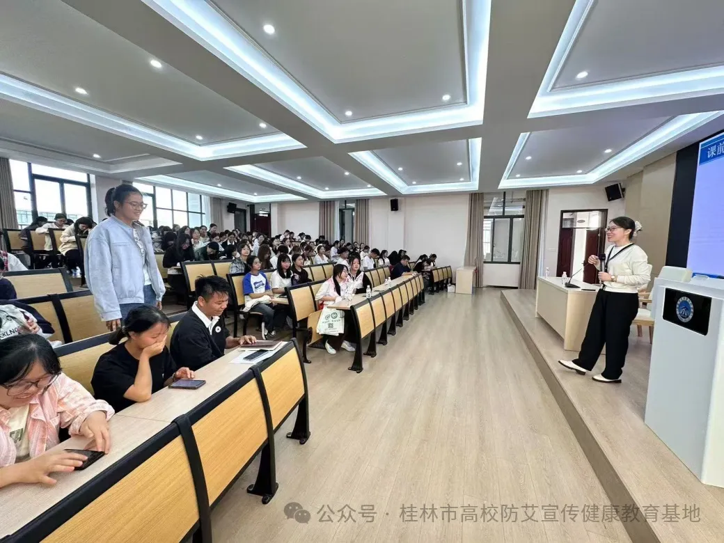 王娜老师谆谆善诱,以生动幽默、诙谐有趣的语言和同学们互动,让同学们对预防艾滋病形成了更深刻的认识。通过本次讲座,同学们的自我防护意识得到显著增强,对艾滋病、毒品、性与生殖健康知识有了更加全面科学的认识,懂得如何更好地健康成长。桂林市高校防治艾滋病宣传教育基地在桂林市卫健委指导下后期将常态化深入大中专院校校园开展防艾系列活动,为构建健康、和谐、安全校园环境贡献力量。