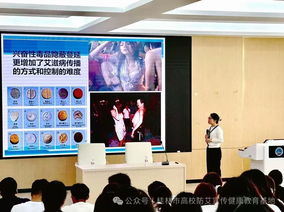 2024年11月8日下午,桂林市高校防治艾滋病宣传健康教育基地联合桂林市疾病预防控制中心、桂林市计划生育药具管理站在桂林师范高等专科学校举办了主题为“凝聚社会力量,合力共抗艾滋”防艾科普讲座。本次讲座由桂林医学院公共卫生学院王娜教授担任主讲人,200余名学生参加活动。