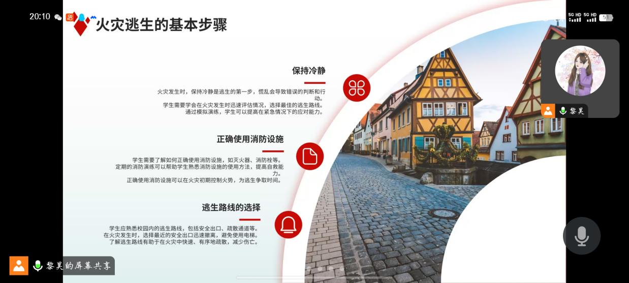 在火灾逃生方面,朋辈导师黎昊也一一给我们罗列出逃生的基本步骤,让我们在火灾发生时及时正确逃生,能够最大程度的避免人员伤亡,并在紧急情况下保持冷静,,迅速做出正确的判断和行动,减少损失。