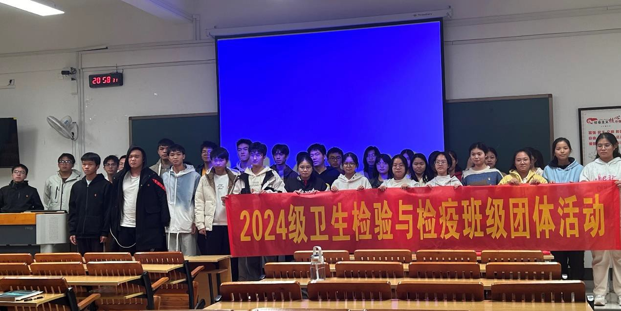 为增强同学们的爱国情怀,提升对中国优秀传统文化和红色文化的认同感,培养自身的历史责任感、使命感以及社会责任感。2024级卫生检验与检疫本科班和2024级应用统计本科班于2024年11月23日晚七点,在桂林医学院(临桂校区)教学楼N106教室共同举办主题为“观红色电影,忆峥嵘岁月”的红色观影活动。本次活动还邀请了两个班级的朋辈导师:黎昊、林凯星、刘秋燕、张可、张斯涵五位研究生学长学姐共同观影。