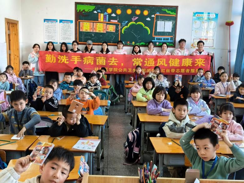 2025年3月18日,为弘扬雷锋精神,传递健康生活的理念,桂林医学院红丝带志愿者服务队走进致远小学,为学生们带来了一场以“勤洗手病菌去,常通风健康来”为主题的卫生健康知识宣讲活动,旨在增强学生们的健康防护意识。
