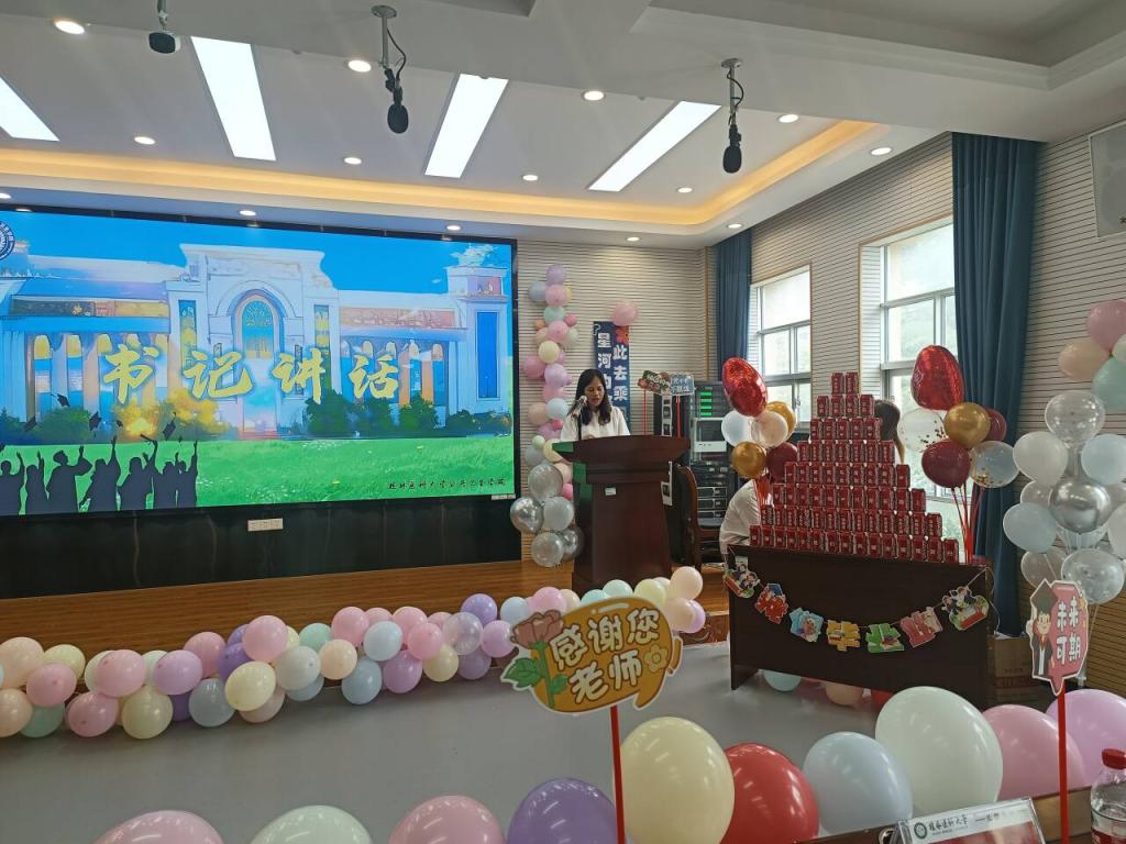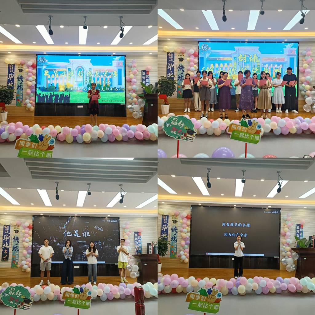 接下来的环节中,离退休党委第三支部书记、原学校工会主席叶曼琪老师为毕业生献上声声祝福,毕业班辅导员葛静、离退休党委第三支部沈雪松、杨萍老师和学生一起深情朗诵的《假如你的学生叫你老师,妈妈》以及毕业班带来的节目,真挚的演绎令在场师生无不动容。