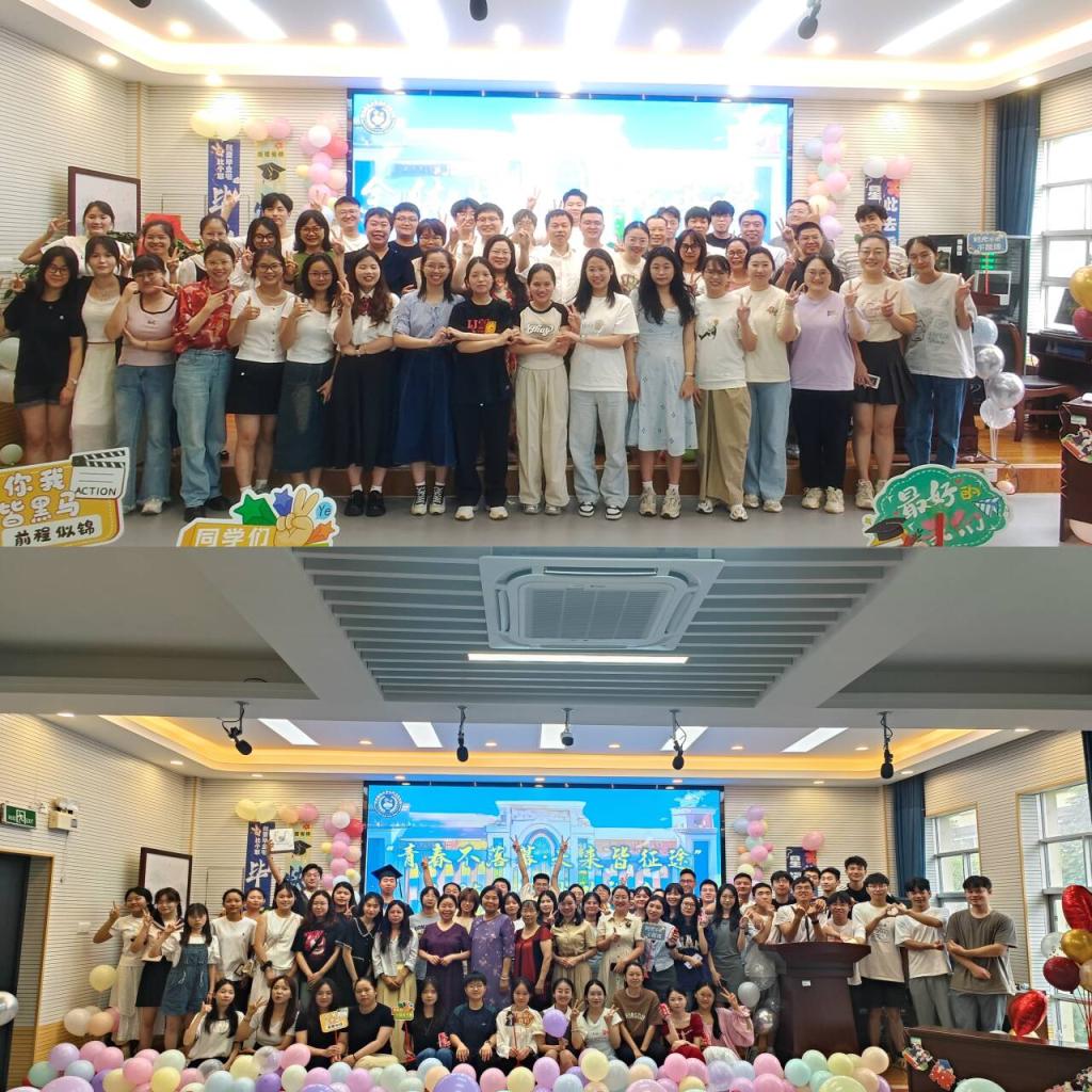 学院为即将奔赴四方的毕业生代表颁发了“2025届校友联络人聘书”,嘱托他们成为联结母校与校友的坚实桥梁。当毕业神曲《再见》的旋律响起,全场师生自发合唱,歌声中满载着同窗情谊与对校园的深深眷恋。在温馨的举杯共饮时刻,全体师生起立合影,定格下这珍贵瞬间。欢送会尾声,《祝你一路顺风》的悠扬乐声在会场回荡全体教师目送毕业生离场。
