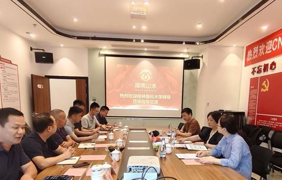 湖南山水集团董事长丁献山对曾小云一行的到来表示热烈欢迎,并详细介绍集团的发展历程、产业布局、未来规划及与桂林医科大学的合作情况。湖南山水集团自2021年成为桂林医科大学本科生实习和研究生联合培养基地以来,已联合培养21名本科生和6名硕士研究生,并有8名学生留集团工作。丁献山表示,湖南山水集团作为专注于公共卫生健康服务的民营企业,始终重视人才培养与引进,希望在原有合作基础上,与桂林医科大学签订战略合作框架协议,建立长期稳定全方位的合作关系。
