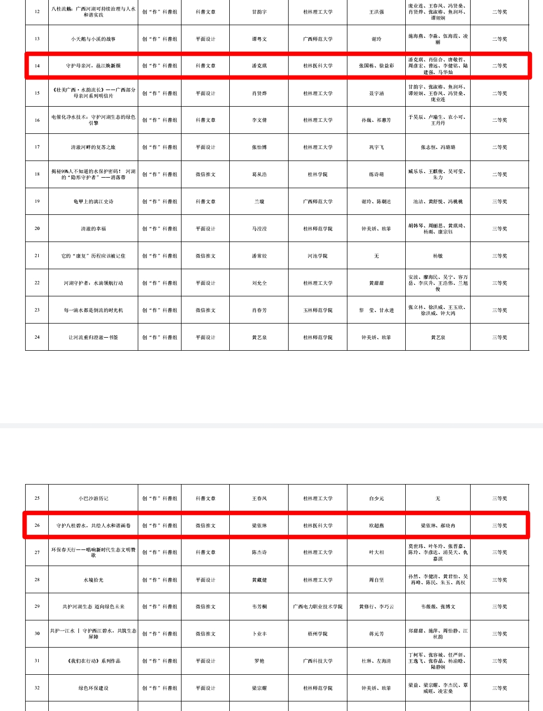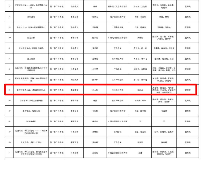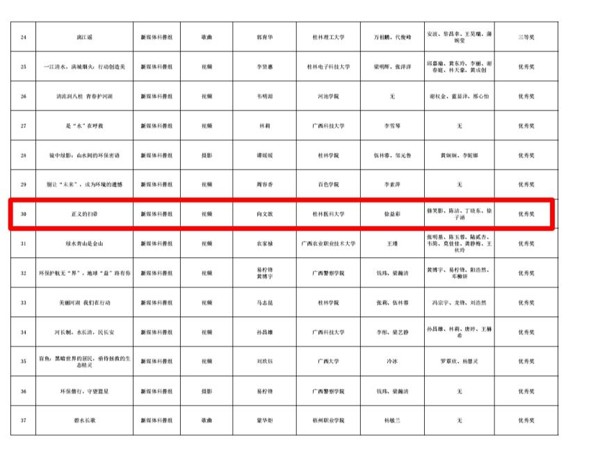 此次获奖,不仅是对获奖团队同学辛勤付出与创新能力的充分肯定,也体现了桂林医科大学公共卫生学院在人才培养、学科交叉融合以及服务地方生态文明建设方面的积极成效。学院将继续鼓励学生关注环境健康议题,提升科普传播能力,培养更多具有社会责任感、创新精神和实践能力的公共卫生人才,为建设美丽中国、健康中国贡献桂医公卫学子的智慧和力量。