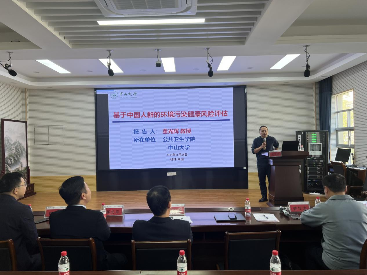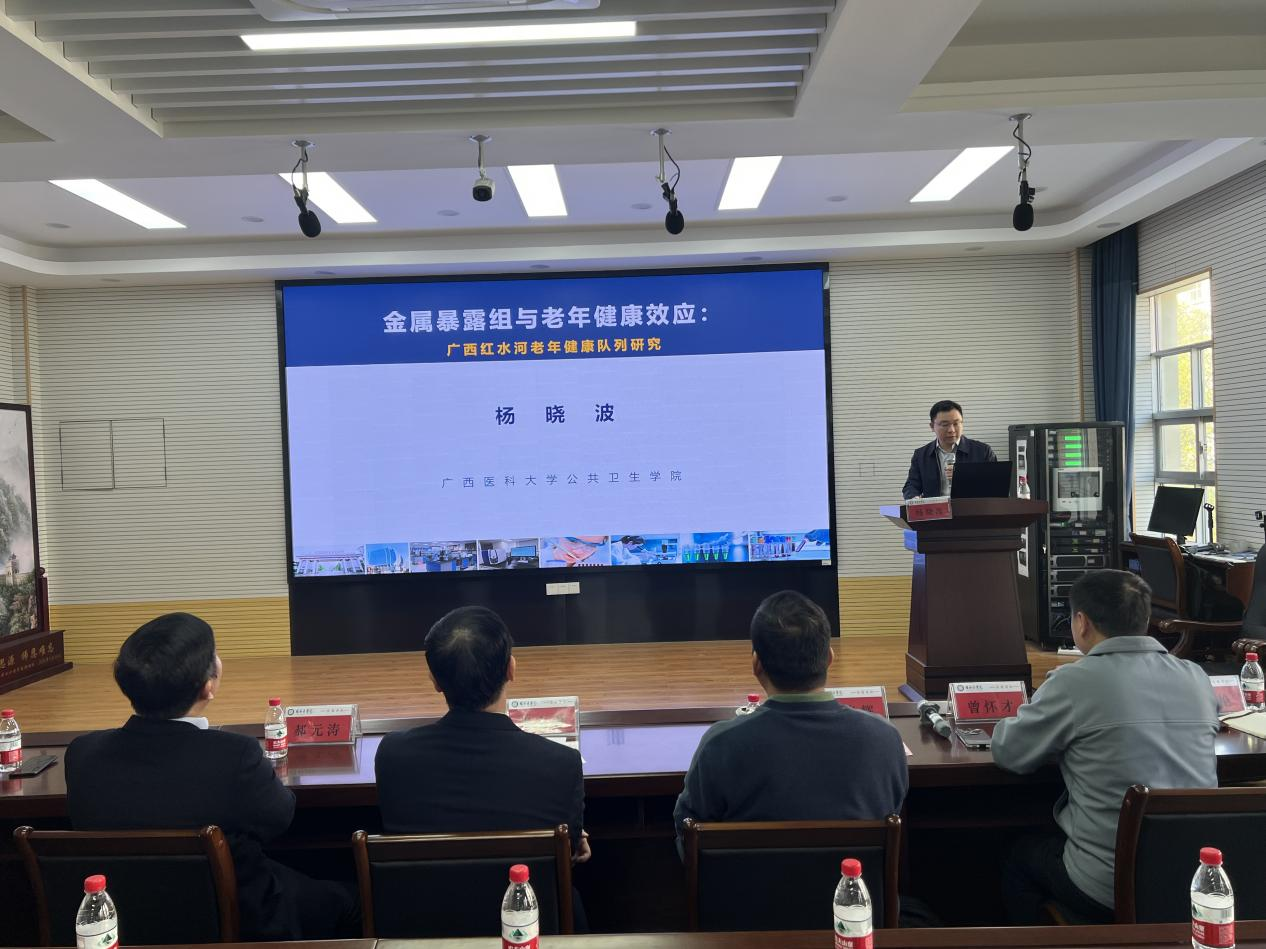曾怀才对与会嘉宾的到来表示热烈欢迎和感谢,并向参会师生介绍了专家。郝元涛以《基于现实世界数据的因果分析方法》为题,从真实世界数据来源到因果分析的思路与常用方法做了详细汇报。董光辉以《基于中国人群的环境污染健康风险评估》为题,阐述了当前我国新污染的种类、全氟化合物污染现状、机体暴露负荷及健康风险。杨晓波以《广西红水河老年健康队列:金属暴露组与神经行为功能》为题,介绍了广西红水河老年健康队列,阐述了金属暴露组与老年神经行为功能、衰老标志物及相关性疾病研究现状。