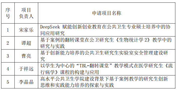 根据研究生学院《关于申报2025年广西学位与研究生教育改革课题的通知》,经个人申报、专家评选、学术委员会讨论,拟推荐宋家乐等5位老师申报广西学位与研究生教育改革课题,现予以公示,公示时间为2025317—2025319日(共3日)。公示期间,如对结果有异议的,请以书面形式,向学院反映。推荐结果如下: