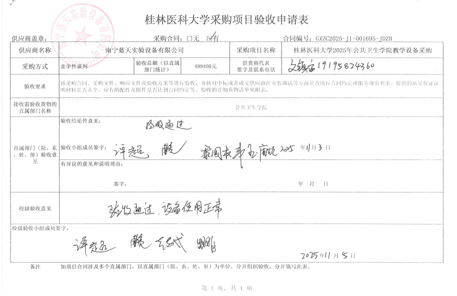 桂林医科大学2025年公共卫生学院教学设备采购验收结果公示