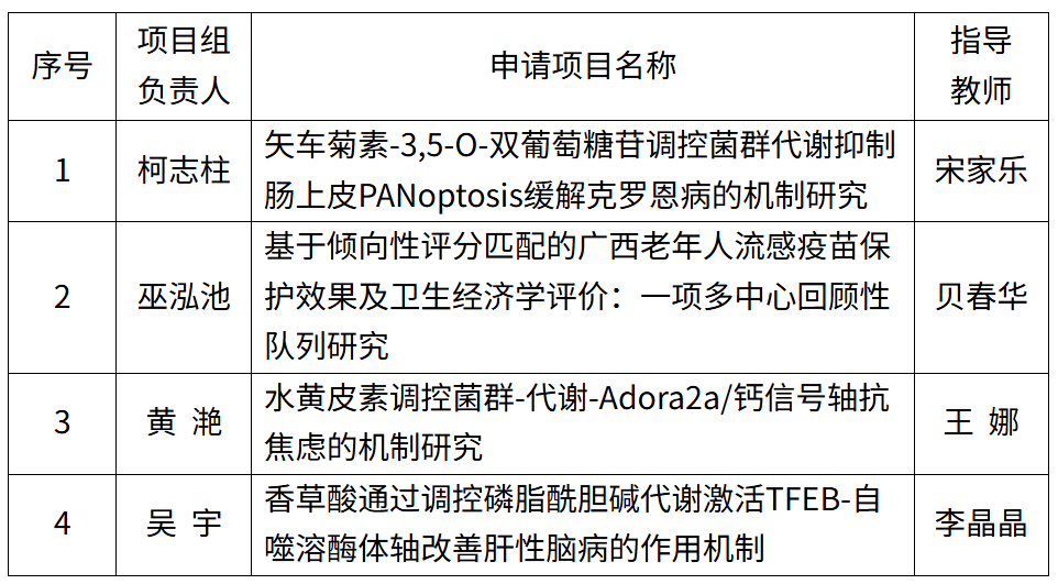 根据研究生院(处)《关于申报2026年广西研究生教育创新计划项目的通知》工作部署,经个人申报、专家评审、学院学位评定委员会不记名投票,拟推荐柯志柱等4位同学申报2026年广西研究生教育创新计划项目,现予以公示。推荐结果如下: