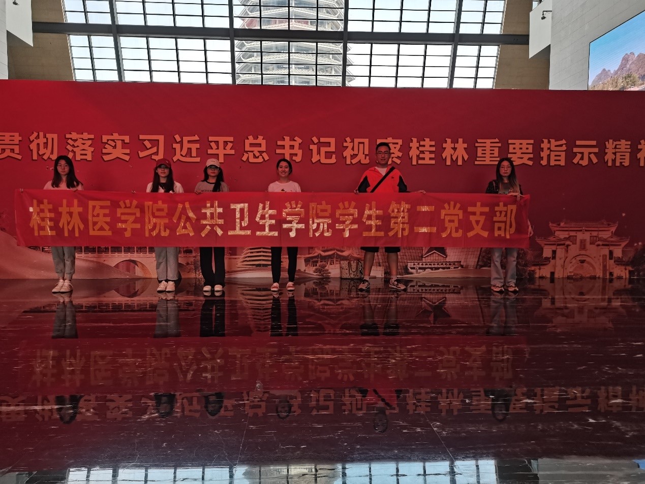 为深入学习贯彻习近平总书记视察广西“4.27”重要讲话精神,坚定支部同志跟党走的理想信念。桂林医学院公共卫生学院学生第二党支部于2022年5月17日由支部书记李艳萍组织全体支部党员、预备党员、发展对象共同参观了桂林市博物馆。