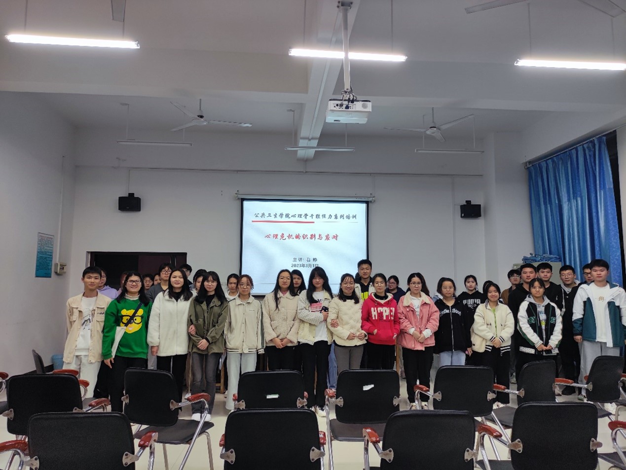 为了认真落实自治区教育厅关于做好2023年春季学期“开学第一课”相关工作要求,为了提高公共卫生学院朋辈心理骨干的工作能力,建设一支具备心理自助和助人能力的朋辈助力军,3月1日晚,公共卫生学院举办“致远讲堂”第六期主题活动。学院学工办主任葛静老师以“心理危机的识别与应对”为题授课,学院全体心理委员、部分宿舍长等47人参加了培训。