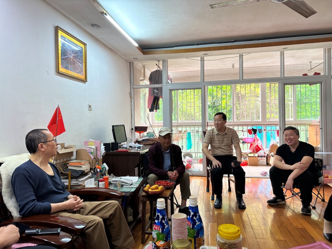在李胜联教授的家中,谭盛葵院长同李老师拉起家常,悉心询问他的身体状况和生活情况,并介绍了学院目前发展状况和今后的发展规划。交谈中,他们回忆起曾经工作中难忘点滴,提到老前辈们工作期间兢兢业业、勤勤恳恳、不计得失、乐于奉献地⼲好本职⼯作,切实当好表率、树好标杆,在学院的发展建设中发挥了重要的作用。谭院长表示,学院的发展成就离不开老领导、老教师们开拓进取打下的坚实基础,希望老领导、老教师们好好保重身体,一如既往地关心、支持学院的发展,积极建言献策,为学院的高质量发展发挥余热。李老师对学院的关心和慰问表示感谢,高度赞扬了学院领导班子的扎实工作作风,衷心祝愿学院领导班子发扬精诚团结、艰苦奋斗、开拓创新的工作精神,率领全体师生员工,搞好人才培养、教师队伍建设、学科团队建设、实验室建设等相关工作,推进学院再上一个新台阶。同时大家认真听取了李老师对学校、学院工作的宝贵意见和建议。