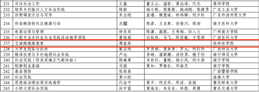 2023年4月18日,教育部公布了第二批国家级一流本科课程认定结果,我院谭盛葵教授负责的《艾滋病健康教育》课程成功入选国家级一流本科课程。