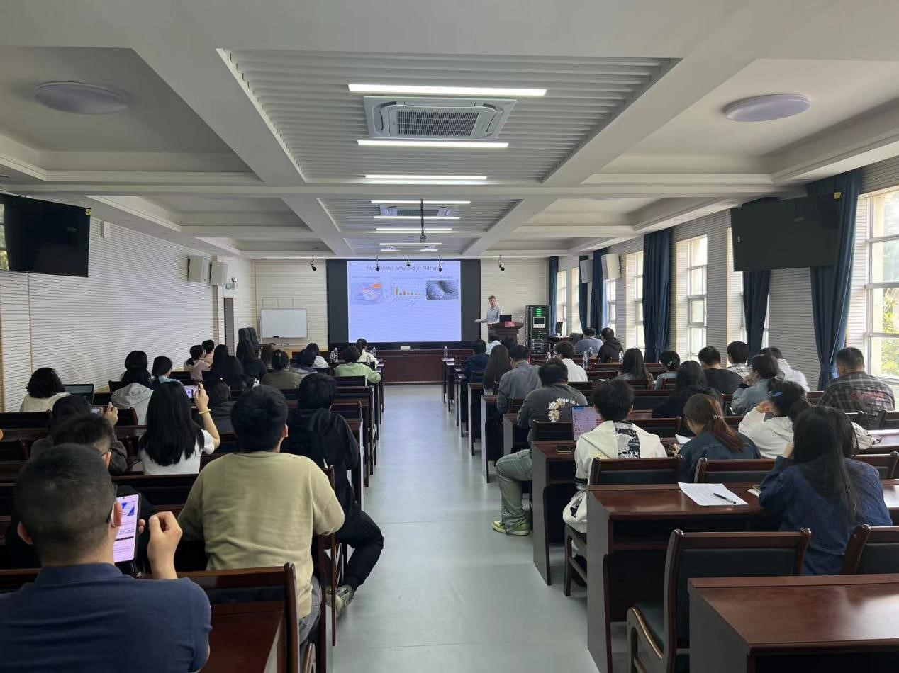 Daniel教授围绕蛋白质淀粉样纤维化、膜蛋白折叠和蛋白质-表面活性剂相互作用,结合其相关研究工作精彩讲解淀粉样蛋白折叠过程、异常折叠后可能产生的疾病以及细菌中功能性淀粉样蛋白应用等问题,深入浅出的阐述了其研究结果和对于相关问题的思考,引发了师生们的深入思考,启发大家进行创新性研究。报告现场互动气氛活跃,师生们积极提问,Daniel教授耐心细致解答。经过2个小时左右的学习与交流,Daniel教授以其渊博的知识,缜密的科研设计思路,独到的科学见解,受到了广大师生的欢迎和爱戴,大家都表示受益匪浅,感受很深,启迪颇多,讲座获得圆满成功。