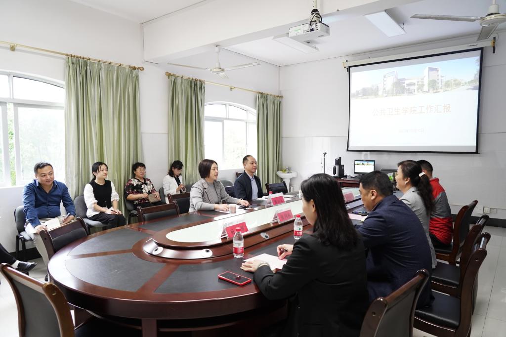 2023年10月10日上午,学校党委副书记、院长曾小云到公共卫生学院开展调研指导,学校院办党办主任彭靖陪同调研,公共卫生学院全体领导、各科室负责人、教学秘书和教师代表参加了此次会议。