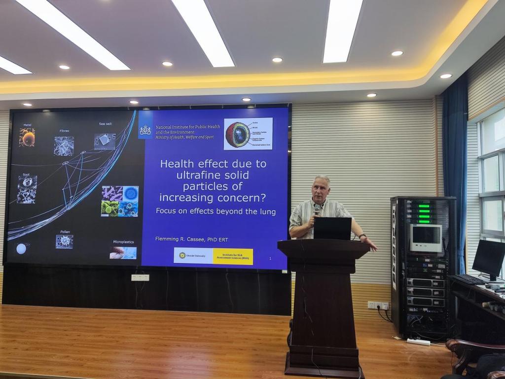 5月12日上午,荷兰国家公共卫生与环境研究所首席科学官,荷兰乌得勒支大学教授Flemming R. Cassee受我校公共卫生学院邀请莅临我校作学术交流。Flemming教授自1995年起一直从事吸入毒理学工作,主要侧重于环境颗粒物、空气中的纳米材料以及微塑料对健康的不利影响,相关研究成果有助于制定和改进空气质量标准以及为政策制定者提供科学依据。Flemming教授是荷兰基础设施和环境部、荷兰卫生委员会、世界卫生组织(WTO)和经济合作与发展组织(OECD)等机构的高级科学顾问;还是Particle and Fiber Toxicology杂志的主编和许多其他国际科学期刊的审稿人/编辑。
