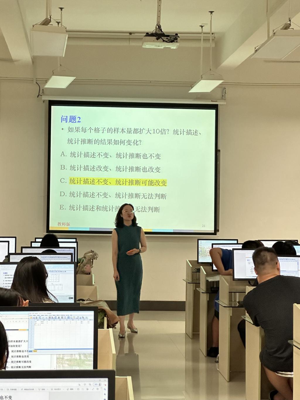 下午,顾菁教授亲自为我院学生上了一堂精彩的医学统计学实验课,学生“近距离”感受名师风采,热情饱满。课后,学生纷纷表示:“顾老师授课的方式非常适合我们,知识结构层次分明,重点突出,理论和实际相结合,通过例题让我们更易了解和掌握”;“顾老师治学严谨,平易近人,课上能够循循善诱,注意启发和调动我们的积极性”;统计教研室老师也表示听顾老师授课受益匪浅。此次“慕课西行”活动不仅为学院带来了宝贵的教学资源,更为我们的学生打开了通往更高层次学术殿堂的大门。我们期待通过与中山大学的深度合作,不断提升医学统计学师资队伍,为培养出更多能够应对未来公共卫生挑战的高素质人才奠定基础。中山大学医学统计学系老师们也希望通过这样的合作模式,打破地域限制,让优质的教学资源惠及更多的学生,为我国公共卫生事业的发展贡献力量。