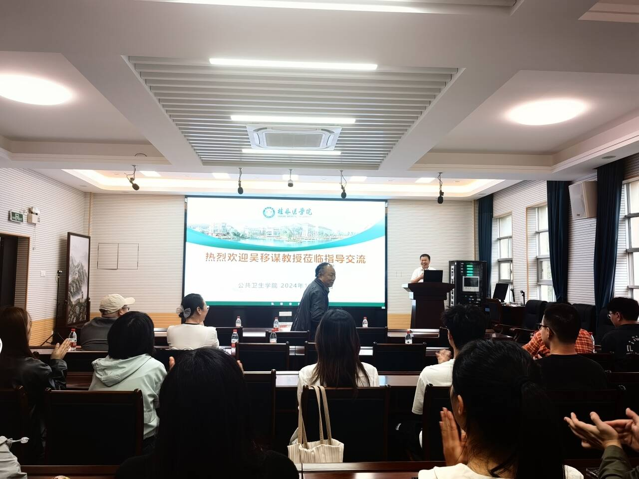 2024年10月22日,南华大学原副校长、二级教授吴移谋应邀到桂林医学院公共卫生学院开展题为《医学科学研究策略》的学术讲座。学院党委副书记、院长曾怀才主持此次会议,我校师生代表200余人到现场聆听。