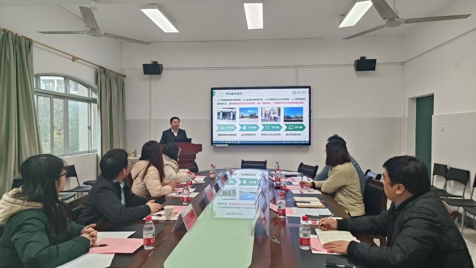 1月9日上午,广西医科大学公共卫生学院党委书记邹云锋、党委副书记唐凤及学院辅导员等一行4人,到我院进行党建、学生工作方面的经验交流。学院领导班子成员及学院辅导员热情接待来访人员。