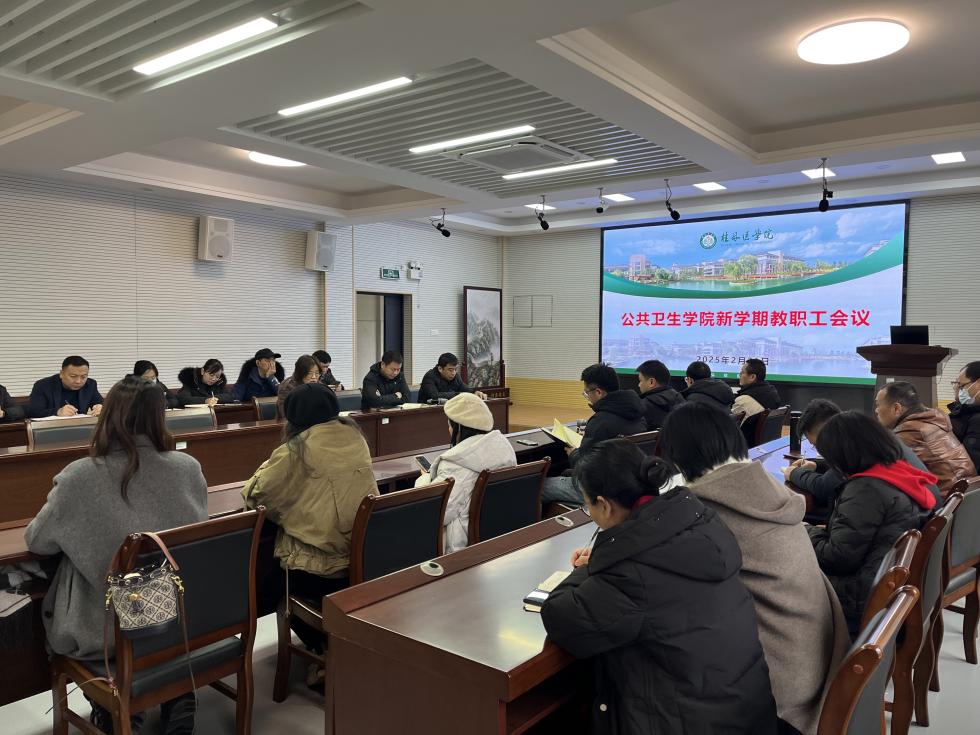 2025年2月21日,公共卫生学院召开了新学期职工大会。本次大会由学院院长曾怀才主持,全体教职工齐聚一堂,共同回顾过去,展望未来,为新学期学院各项工作的有序开展和长远发展谋篇布局。