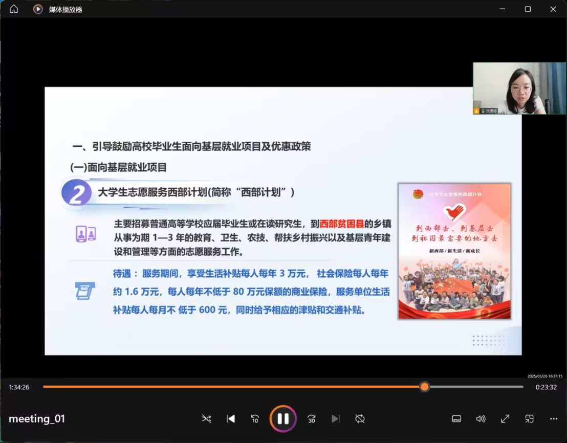 讲座的第二部分,葛静主任与徐益彩书记分别就“三支一扶”、西部计划、入伍、选调生等就业政策进行了细致解读与宣传,帮助同学们更清晰地了解了当前的就业政策与就业机会,为毕业生就业提供了有力支持。