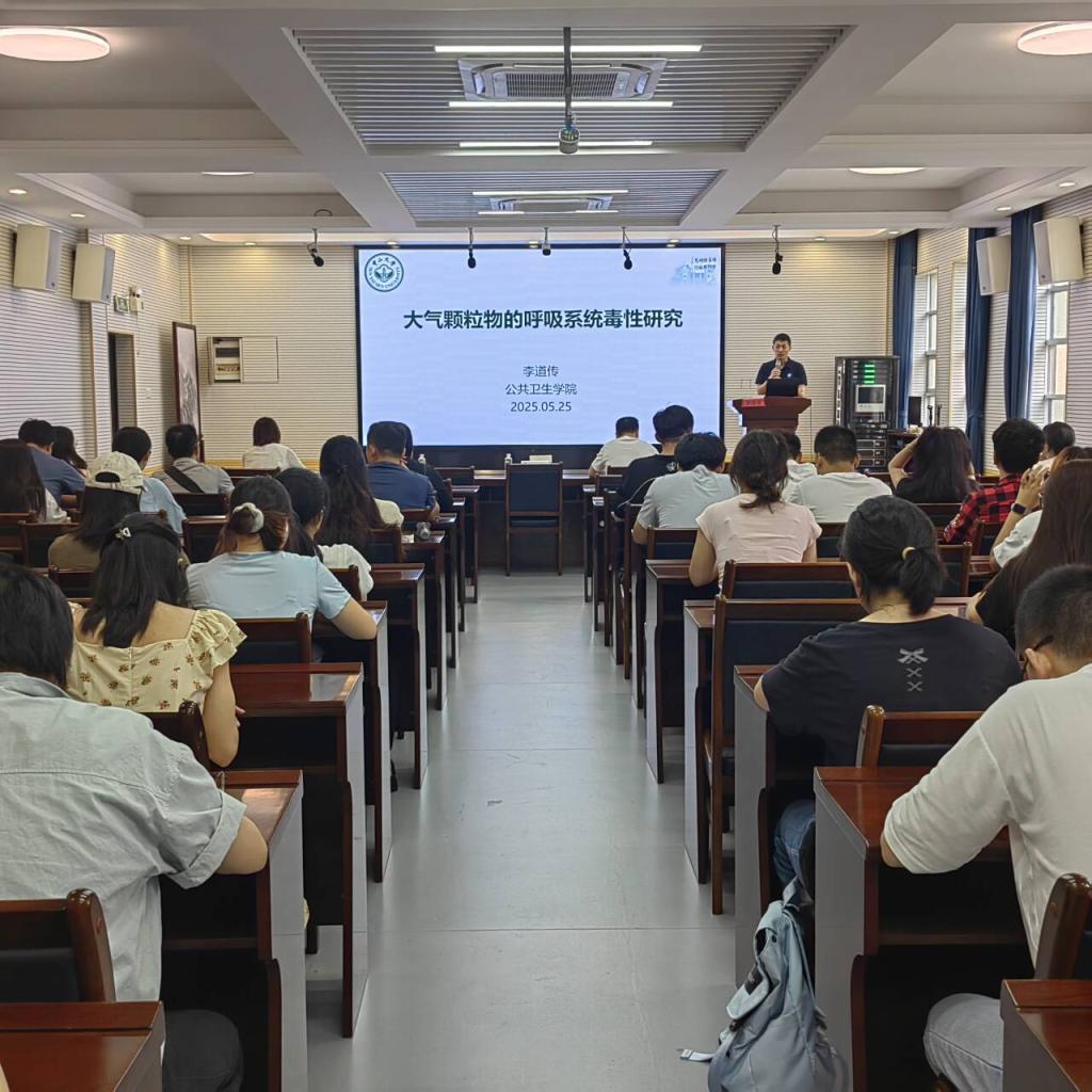 陈光弟教授以《环境金属暴露健康效应及机制研究》为题,系统阐释了课题组深耕多年的创新发现。通过构建多维度暴露评估模型,团队揭示锑元素经消化道暴露后,可特异性激活肠内分泌细胞氧化应激信号轴,致使GLP-1等关键肠促胰素分泌紊乱,从而诱发糖代谢功能障碍的分子机制。这项突破性成果,为重金属污染防控提供了全新干预靶点。李道传教授在《大气颗粒物的呼吸系统毒性研究》报告中,展示了自主研发的大气PM2.5实时动态染毒系统。该技术突破传统静态暴露模式局限,实现颗粒物粒径分布、化学组分与真实环境的高度拟合。通过构建多组学分析体系,团队阐明PM2.5暴露通过肺泡巨噬细胞线粒体自噬异常诱发肺间质纤维化的信号通路,相关成果为制定精准化大气污染防治策略提供了重要理论支撑。