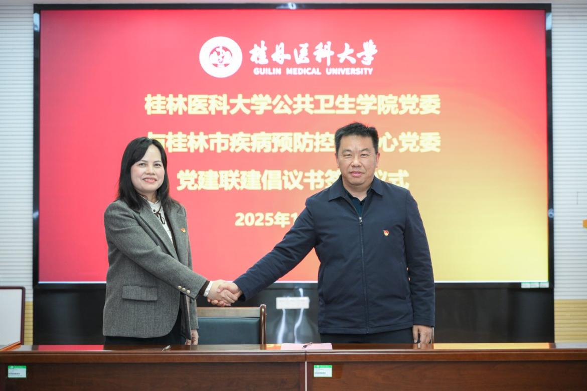 会议尾声,贝春华代表学院与桂林市疾控中心签订《党建联建倡议书》,明确建立“党委互动、支部共建、人才互育、资源共享”机制,打造校地合作样板。