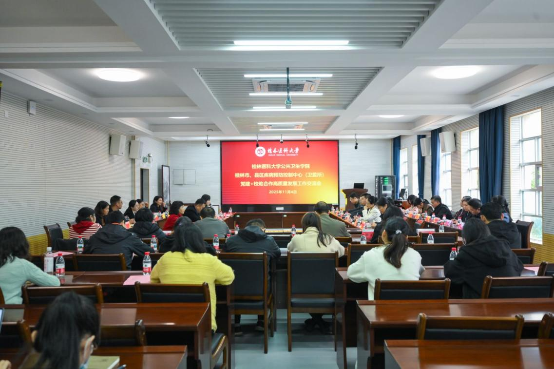 11月4日,桂林医科大学公共卫生学院在临桂校区举办“党建+校地合作高质量发展”工作交流会,桂林市及各县区共22家疾控机构主要负责同志,与学院党政领导班子、师生代表共60余人,共话公共卫生领域校地协同高质量发展。