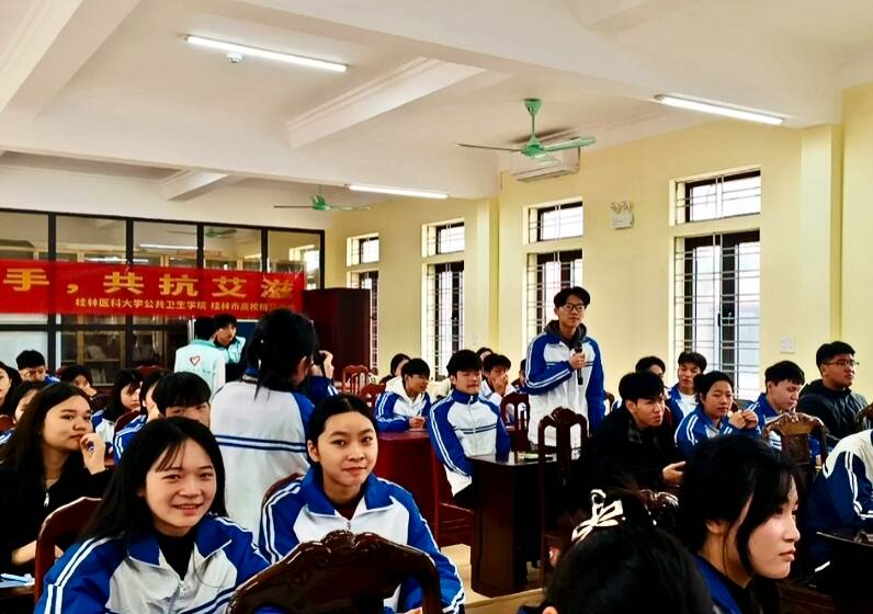 近日,桂林医科大学公共卫生学院防艾宣讲团赴越南太平市Quynh Coi High School,成功举办“中越携手,共抗艾滋”主题宣讲活动。此次活动依托桂林市高校防治艾滋病健康教育宣传基地,以“调研-宣讲-反馈”全流程闭环工作法为核心,搭建中越跨境健康交流桥梁,是学校践行“健康中国”战略、服务“一带一路”卫生健康共同体建设的重要实践。
