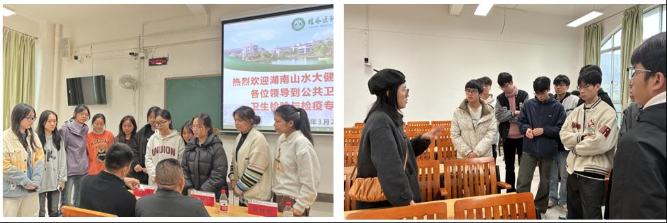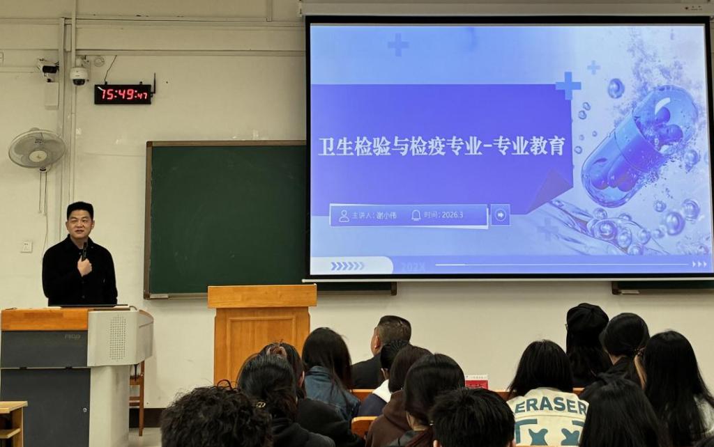 为深化产教融合,帮助学生明晰专业发展方向,了解行业人才需求,提前规划职业路径,3月24日,公共卫生学院特邀湖南山水集团董事谢利平、湖南山水检测有限公司总经理谢小伟一行,为学院大一至大三卫生检验与检疫专业的全体学生开展了一场别开生面的专业教育讲座。