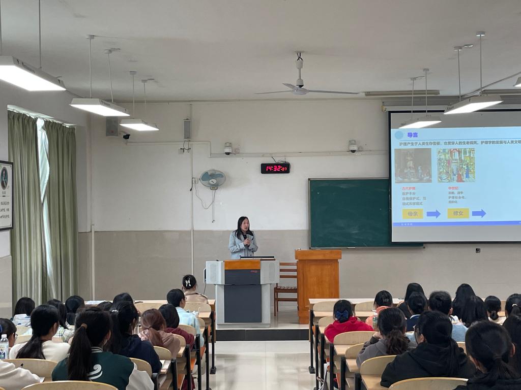 为充分发挥优秀教师示范课的引领、带动作用,促进不同专业教师之间融合交流、协同发展,进一步提升我校教师教学业务素质和教学水平,4月7日下午,教育评价与教师教学中心组织开展了第三期校级示范课及教学讨论活动,本次示范课主讲教师为桂林医学院优秀教师、护理学院院长高燕教授。学校总督学、校级督导、二级学院教学副院长、二级学院督导、教学管理人员及相关教研室人员等70余人到场参加。
